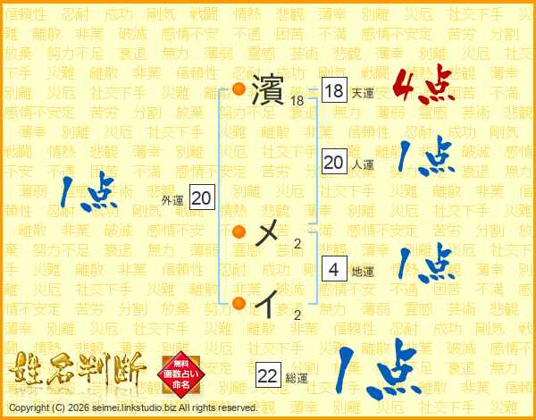 濱メイさんの天運は18画の4点!