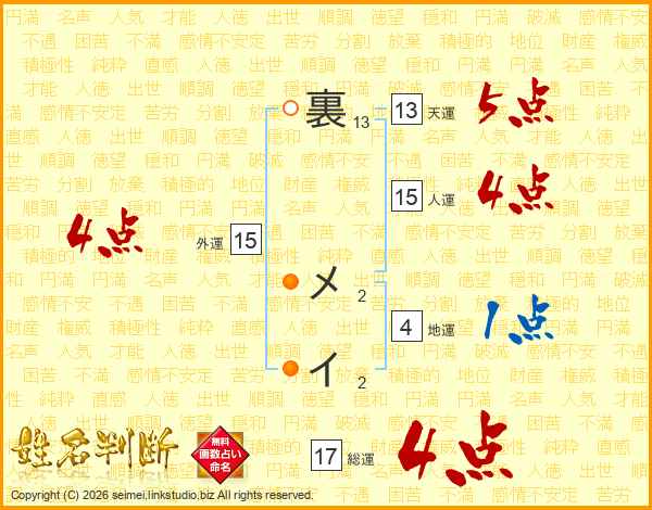裏メイさんの総運は17画の4点!