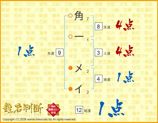 角一メイさんの総運は12画の1点!