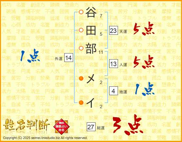 谷田部メイさんの総運は27画の3点!