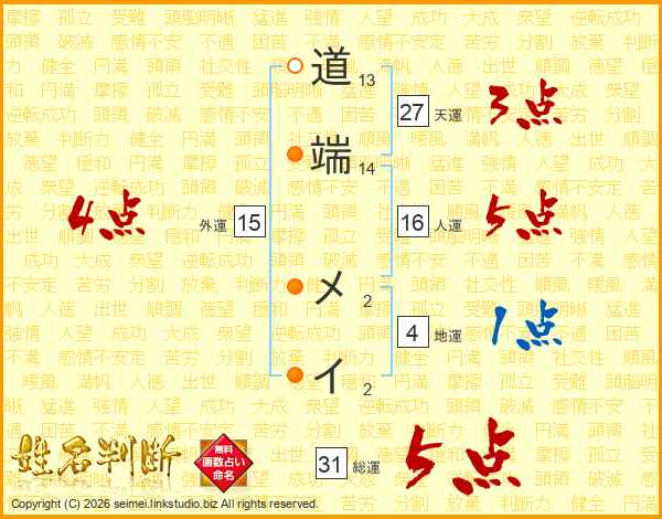 道端メイさんの総運は31画の5点!