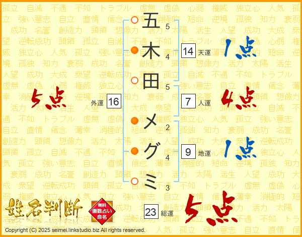 五木田メグミさんの総運は23画の5点!