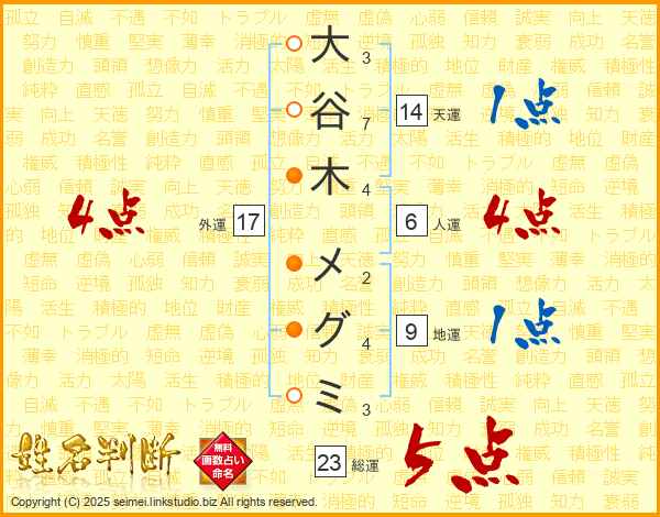 大谷木メグミさんの総運は23画の5点!