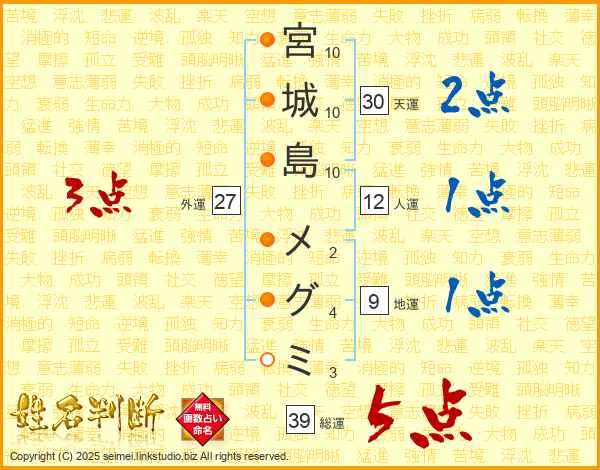 宮(10画)城(10画)島(10画) メ(2画)グ(4画)ミ(3画)