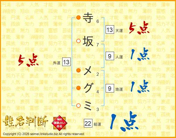 寺坂メグミさんの天運は13画の5点!
