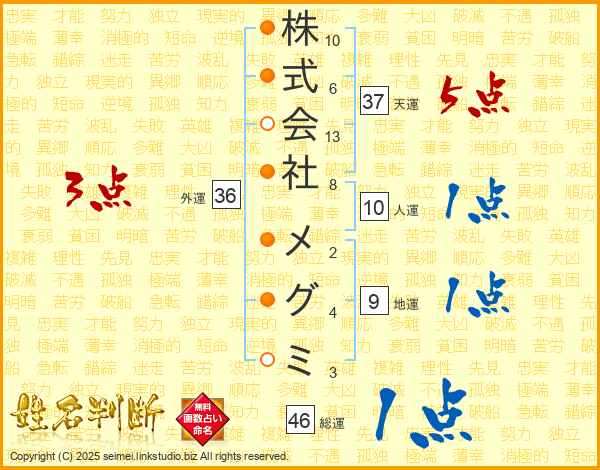 株(10画)式(6画)会(13画)社(8画) メ(2画)グ(4画)ミ(3画)