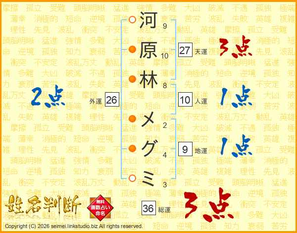 河原林メグミさんの天運は27画の3点!
