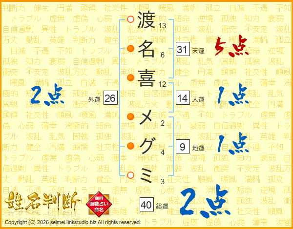 渡名喜メグミさんの外運は26画の2点!
