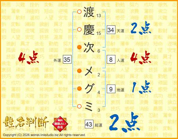 渡慶次メグミさんの外運は35画の4点!
