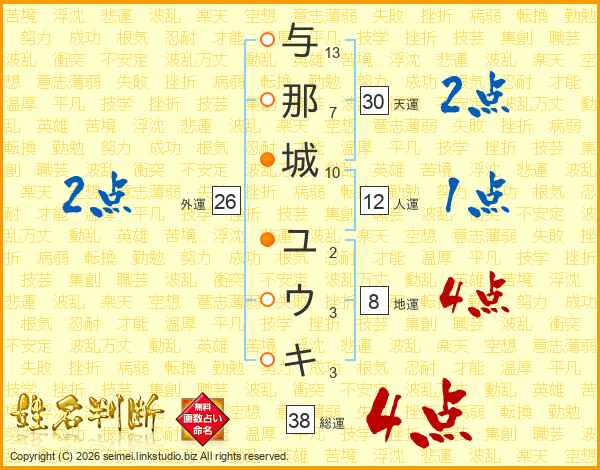 与那城ユウキさんの総運は38画の4点!
