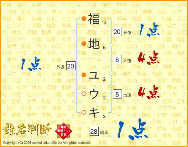 福地ユウキさんの総運は28画の1点!