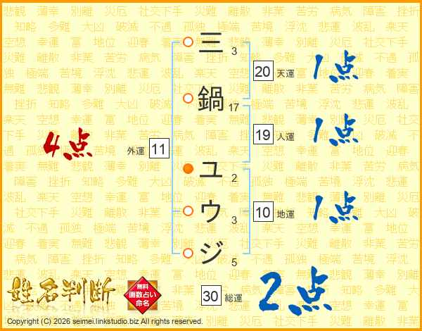 三鍋ユウジさんの総運は30画の2点!