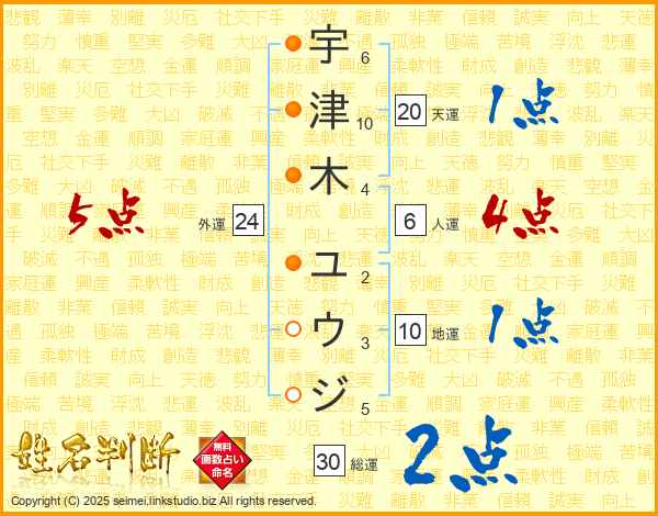 宇津木ユウジさんの総運は30画の2点!