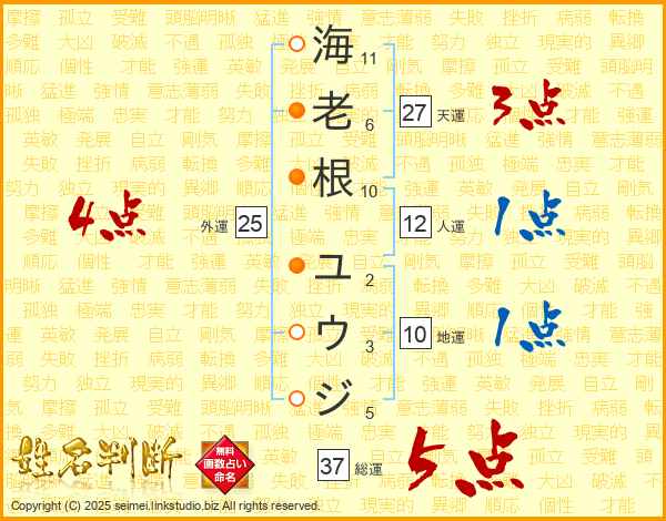 海老根ユウジさんの総運は37画の5点!