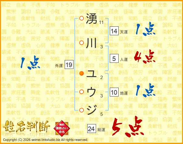 湧川ユウジさんの人運は5画の4点!