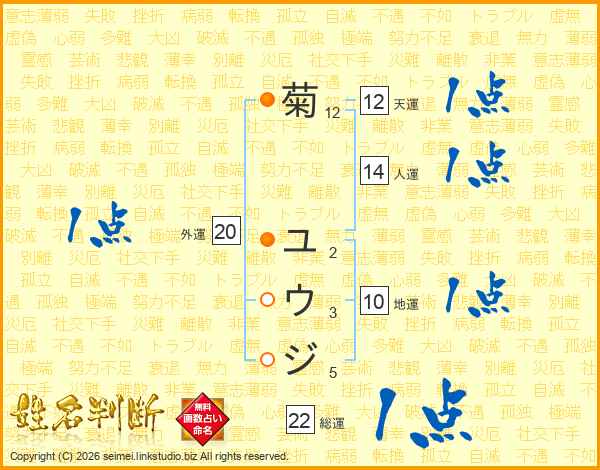 菊(12画) ユ(2画)ウ(3画)ジ(5画)
