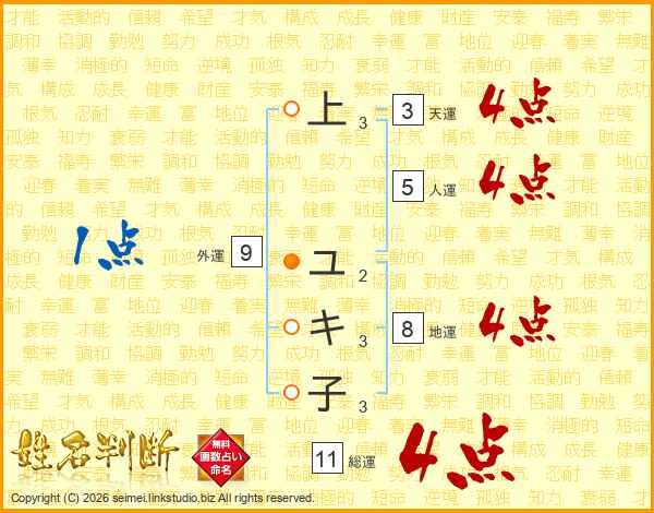 上ユキ子さんの総運は11画の4点!