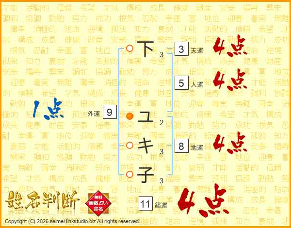 下ユキ子さんの総運は11画の4点!
