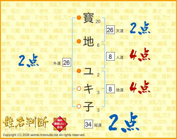 寳地ユキ子さんの天運は26画の2点!