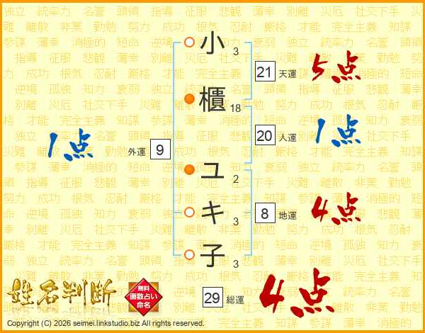 小櫃ユキ子さんの総運は29画の4点!