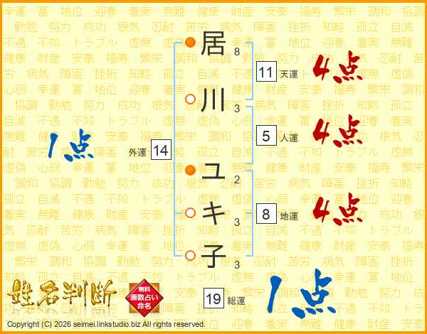 居川ユキ子さんの外運は14画の1点!
