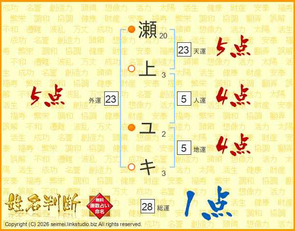 瀬上ユキさんの天運は23画の5点!