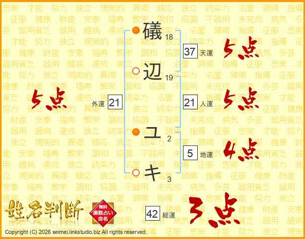礒辺ユキさんの外運は21画の5点!
