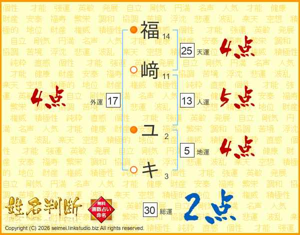 福(14画)﨑(11画) ユ(2画)キ(3画)