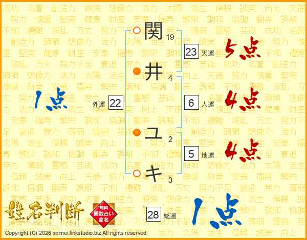 関井ユキさんの総運は28画の1点!