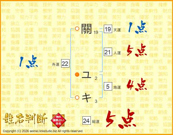 關ユキさんの総運は24画の5点!