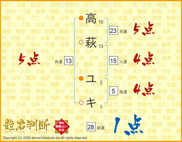 高萩ユキさんの天運は23画の5点!