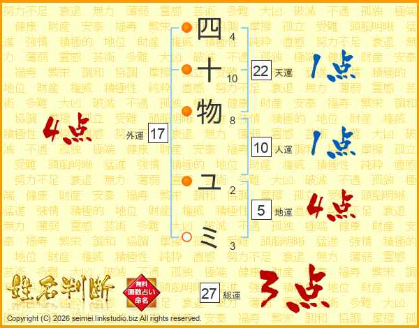 四十物ユミさんの外運は17画の4点!