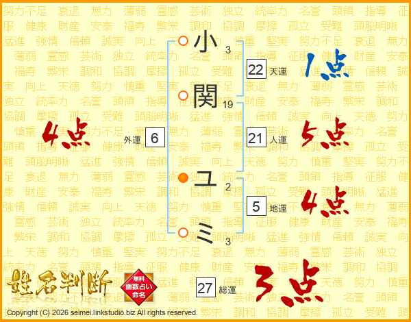 小関ユミさんの総運は27画の3点!