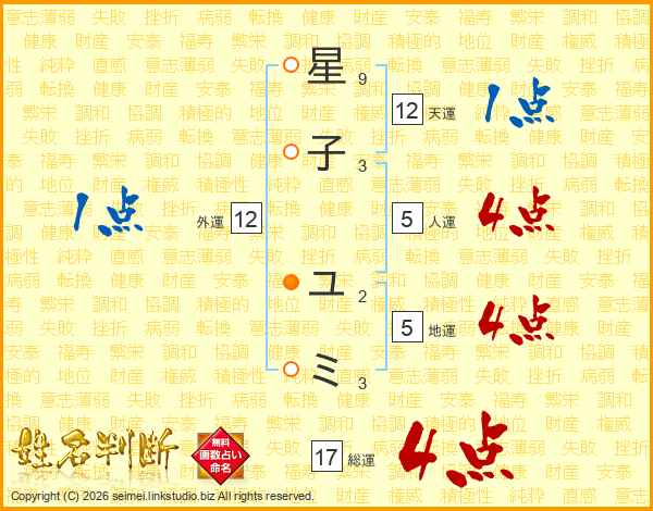星子ユミさんの総運は17画の4点!