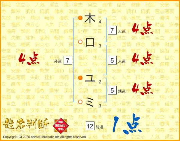 木口ユミさんの総運は12画の1点!
