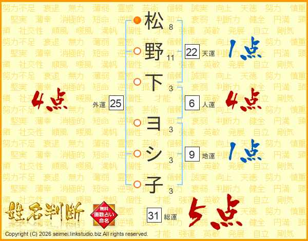 松野下ヨシ子さんの総運は31画の5点!