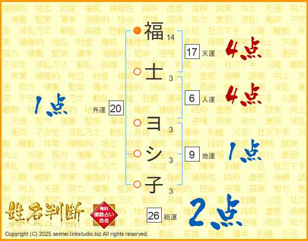 福(14画)士(3画) ヨ(3画)シ(3画)子(3画)