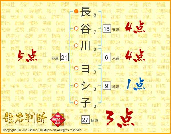 長谷川ヨシ子さんの外運は21画の5点!