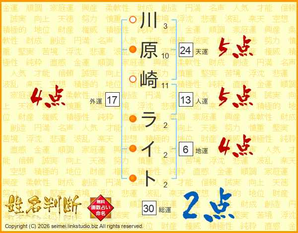 川原崎ライトさんの総運は30画の2点!
