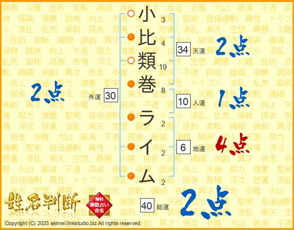 小比類巻ライムさんの総運は40画の2点!