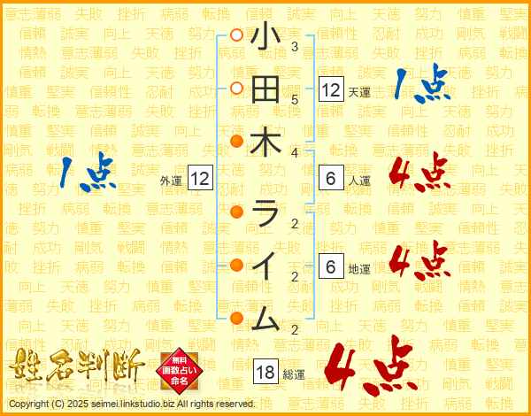 小田木ライムさんの総運は18画の4点!