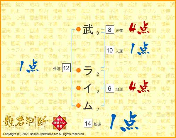 武(8画) ラ(2画)イ(2画)ム(2画)