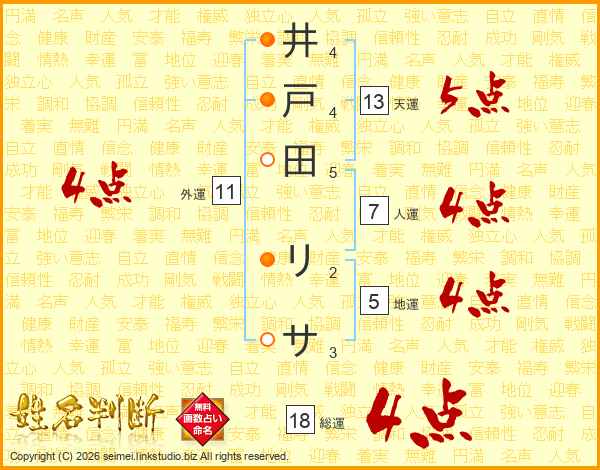 井戸田リサさんの総運は18画の4点!