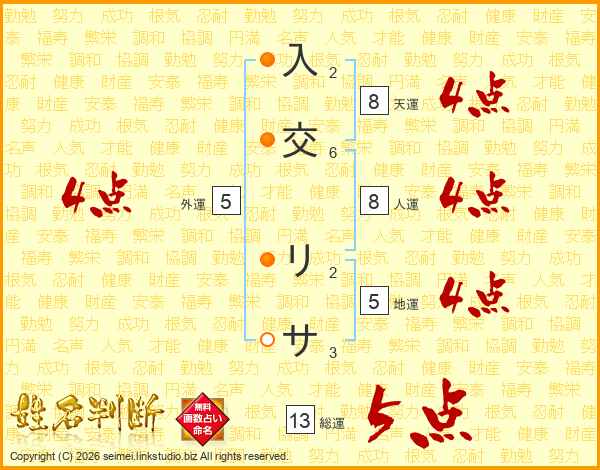 入交リサさんの総運は13画の5点!