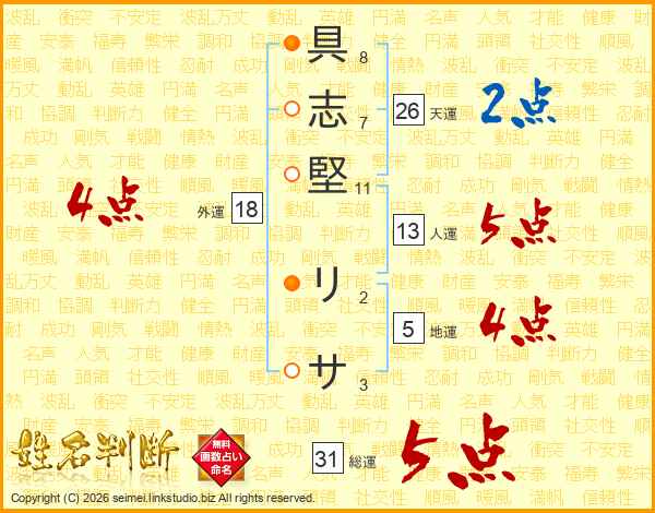 具志堅リサさんの総運は31画の5点!
