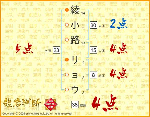 綾小路リョウさんの総運は38画の4点!