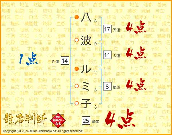 八波ルミ子さんの総運は25画の4点!