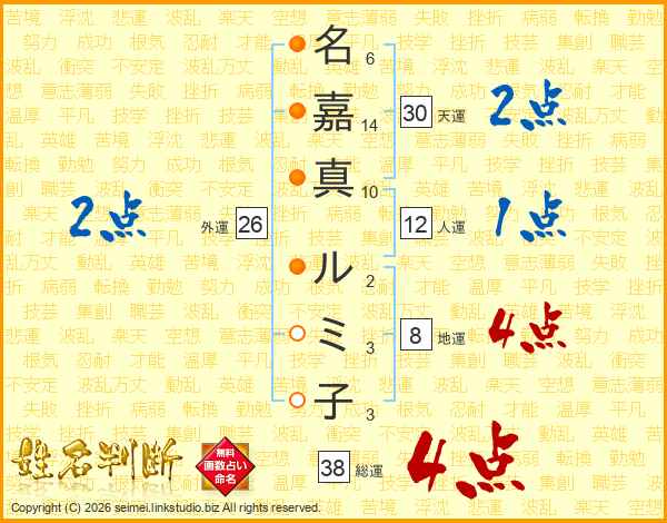 名嘉真ルミ子さんの外運は26画の2点!