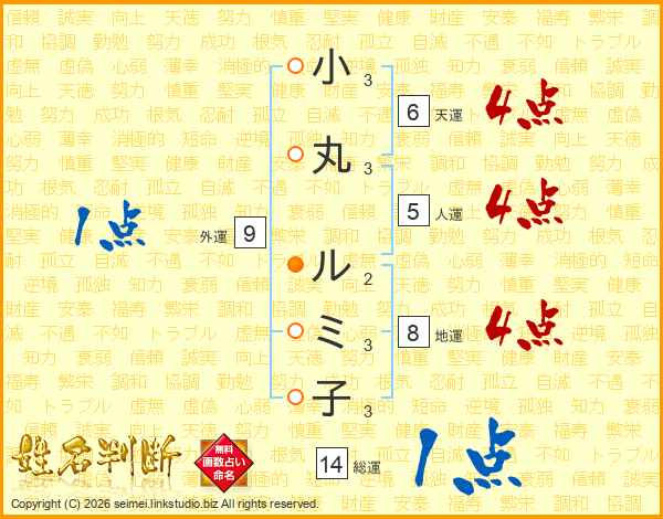 小丸ルミ子さんの総運は14画の1点!