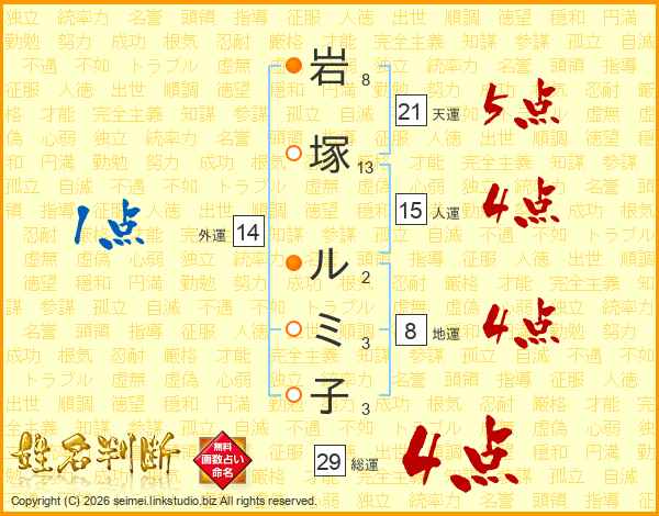 岩塚ルミ子さんの総運は29画の4点!